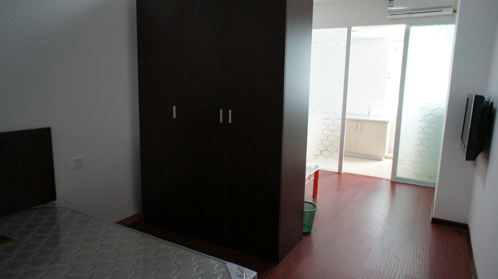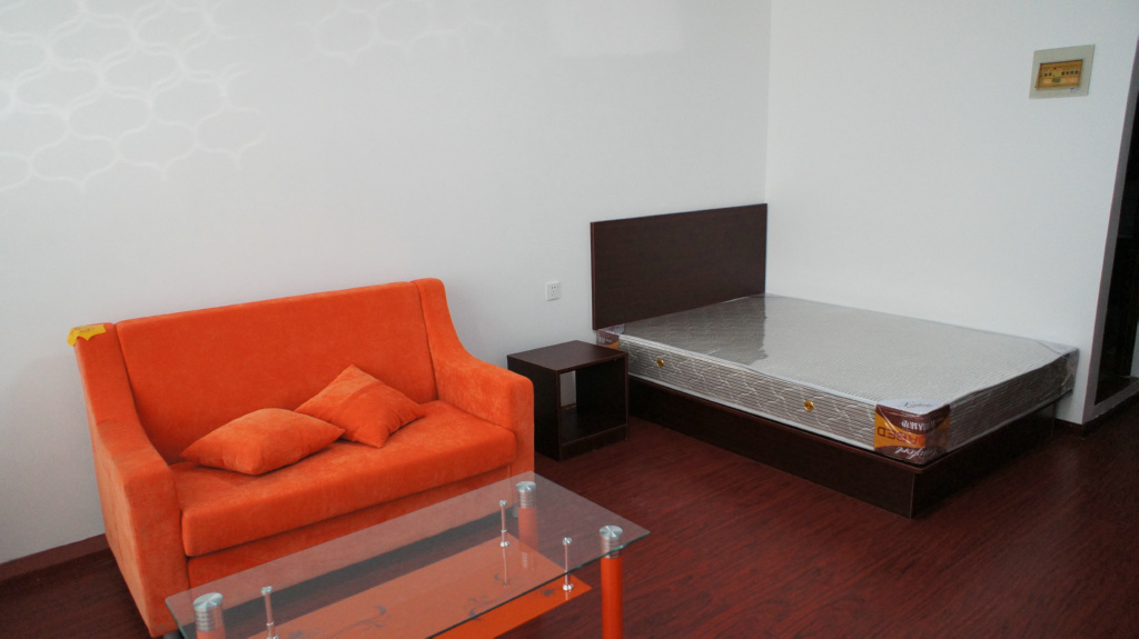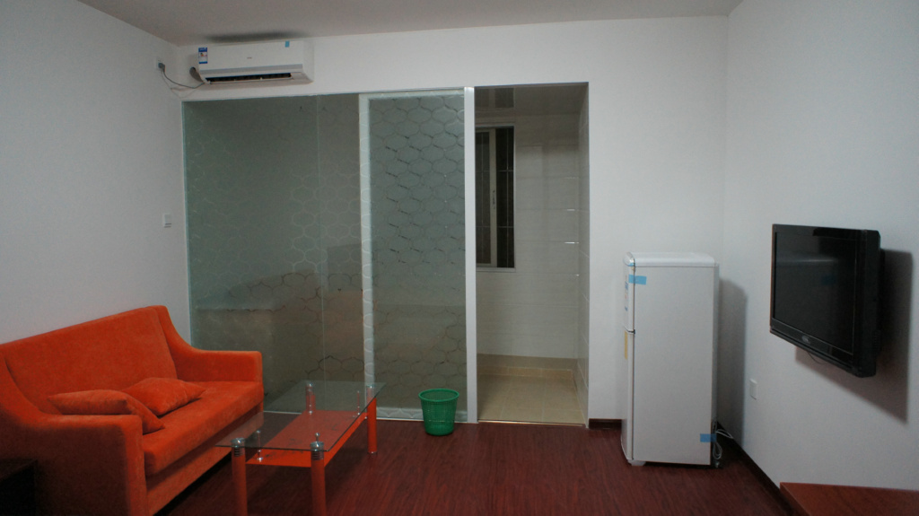 单身公寓,1室1卫1厨房 22㎡--50㎡,1100-2600/月,皆为精装修,全套家具电器。图为真实场景: